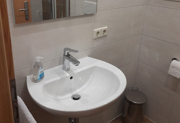 einem Badezimmer (ebenerdige DU/ WC) sowie GästeWC ( die sanitären Anlagen sind 2021