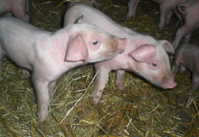 Derzeit haben wir vier Zuchtsauen und ein Eber so dass es in regelmäßigen Abständen kleine